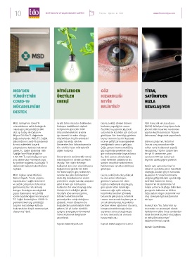 10 BİYOTEKNOLOJİ VE YAŞAM BİLİMLERİ GAZETESİ Temmuz - Ağustos 2020 www.biomedya.com